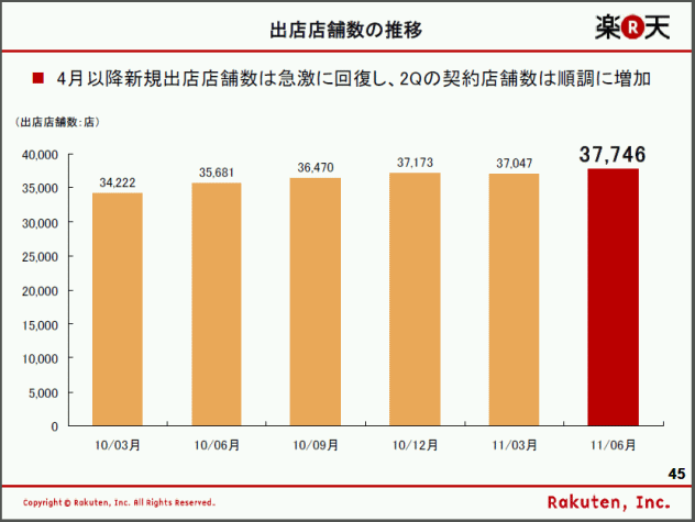 楽天市場のネットショップ出店数は、2010年6月には35,681店でした。
